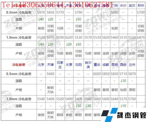 全國23個主要市場1.0mm 冷軋板卷平均價格5587元/噸,較上個交易日下調(diào)10元/噸。