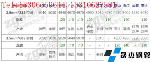 全國12個主要市場2.5mm*232 帶鋼平均價格5013元/噸,較上個交易日下調(diào)10元/噸。