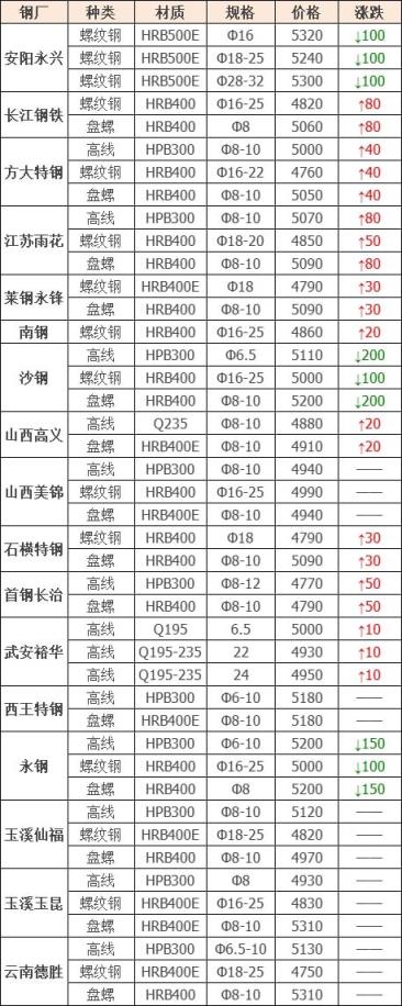 上調(diào)9家,占比52.9%,調(diào)價幅度10-80元/噸;