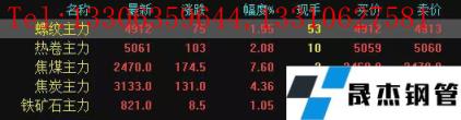 今日螺紋主力期貨漲75,收報4912,漲幅1.55%;熱卷主力漲103,收報5061,漲幅2.08%;焦煤主力漲174.5,收報2470,漲幅7.6%;焦炭主力漲131,收報3133,漲幅4.36%;鐵礦石主力漲8.5,收報821,漲幅1.05%。